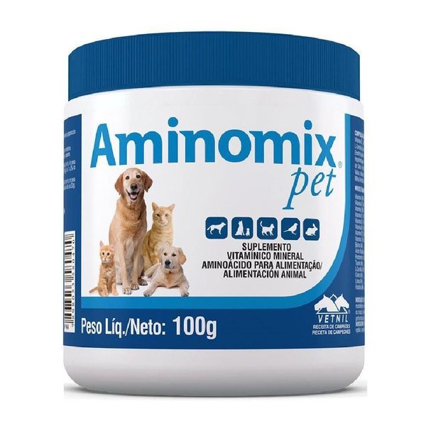 O Aminomix Pet é um suplemento vitamínico, mineral e de aminoácidos, da marca Vetnil, indicado para cães, gatos, aves, répteis, mustelídeos e roedores.