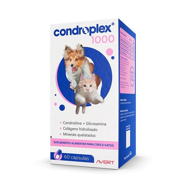 O Condroplex é um suplemento alimentar veterinário que serve para a saúde e manutenção das articulações de cães e gatos, sendo indicado para casos de desgaste articular, lesões, doenças degenerativas (como artrite e artrose) ou para prevenir problemas em animais idosos, com atividades físicas intensas, obesos ou em fase de crescimento. O produto contém glicosamina, condroitina e colágeno hidrolisado, que auxiliam na formação e recuperação da cartilagem.
