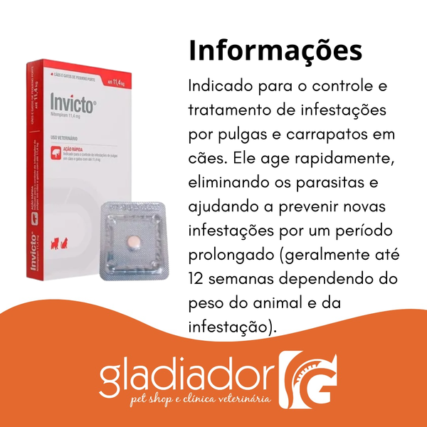 - Antipulgas para cães e gatos; - Antipulgas à base de Nitempiram; - Ideal para eliminar infestações rapidamente; - Proporcionando um rápido alívio para o seu pet; - Utilizado para tratamento de miiase (bicheira); - Blister com um comprimido.