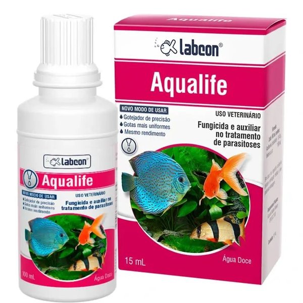 Diluído na água do aquário, seguindo a dosagem recomendada, até a regressão dos sintomas. Durante as primeiras 8 horas após a aplicação, suspenda a filtragem sem desligar o oxigenador. Em geral os sistemas de filtragem funcionam associados à oxigenação. Se não for possível desconectar o oxigenador do sistema, então não desligue a filtragem. Labcon Aqualife também pode ser usado como medicação preventiva, no aquário ou na água de transporte dos peixes.