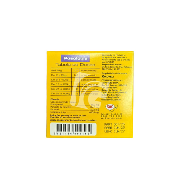 - Composição: Praziquantel, Pamoato de Pirantel e Febantel